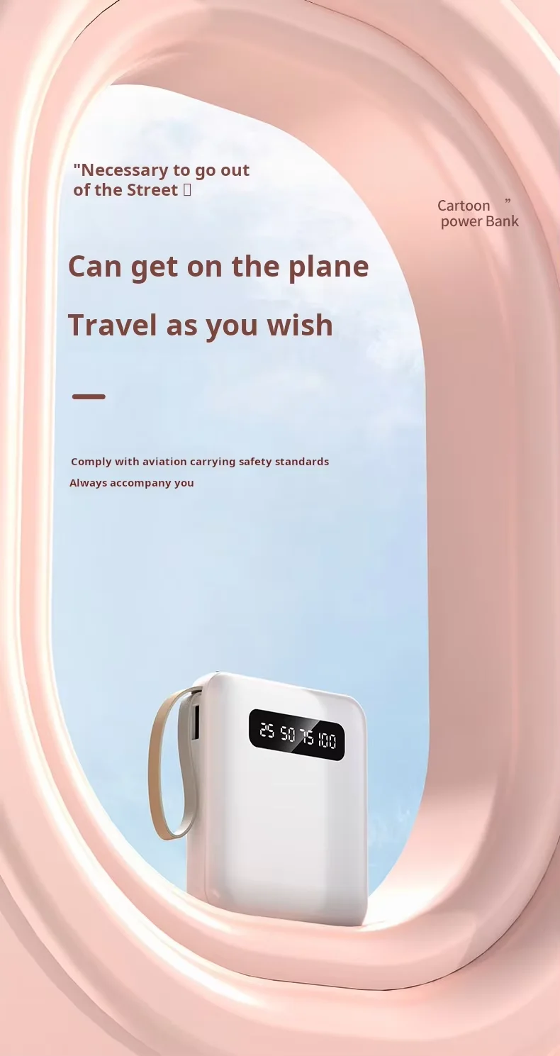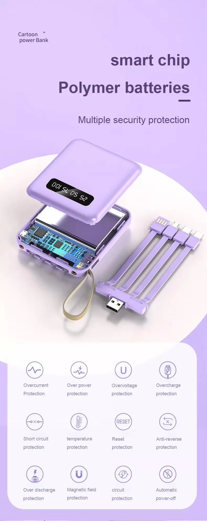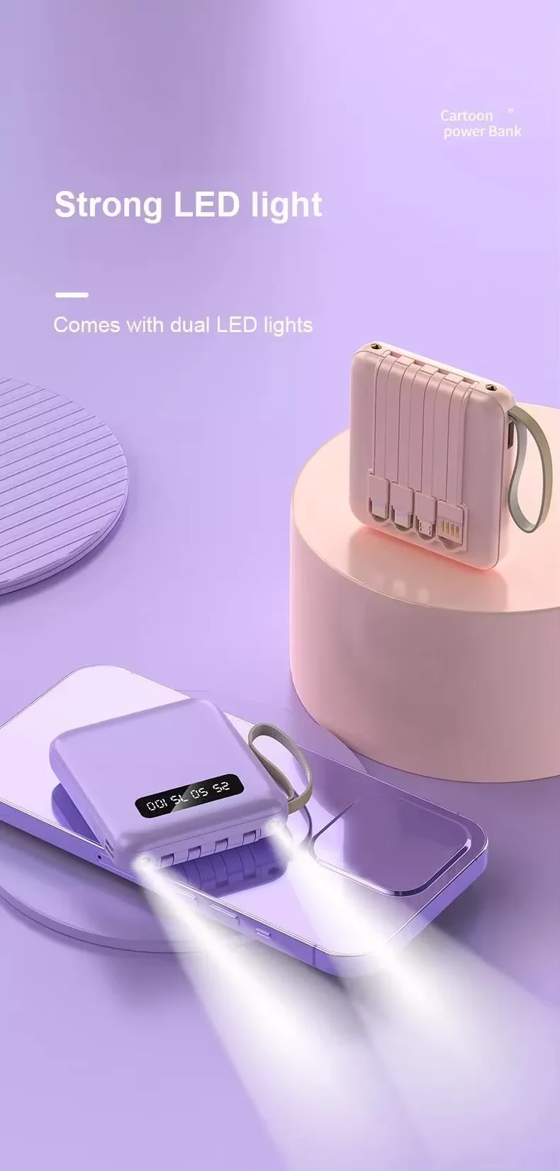 ✨ Stay connected anytime, anywhere with the 20000mAh Mini Power Bank — a compact, high-capacity charger with built-in cables and LED display.