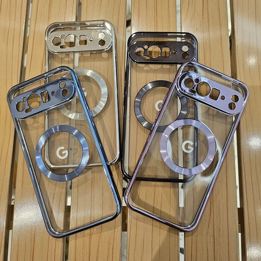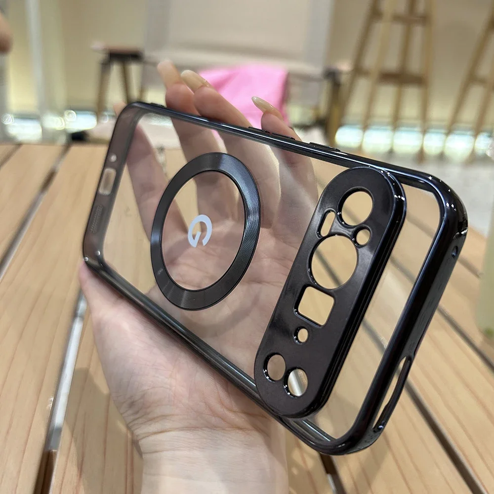 Add both style and protection to your Pixel with this transparent electroplating case, designed for Magsafe wireless charging and everyday durability. Made with a soft silicone + PC/TPU blend, it ensures a slim fit, shockproof protection, and a glossy metallic edge finish that makes your phone stand out.