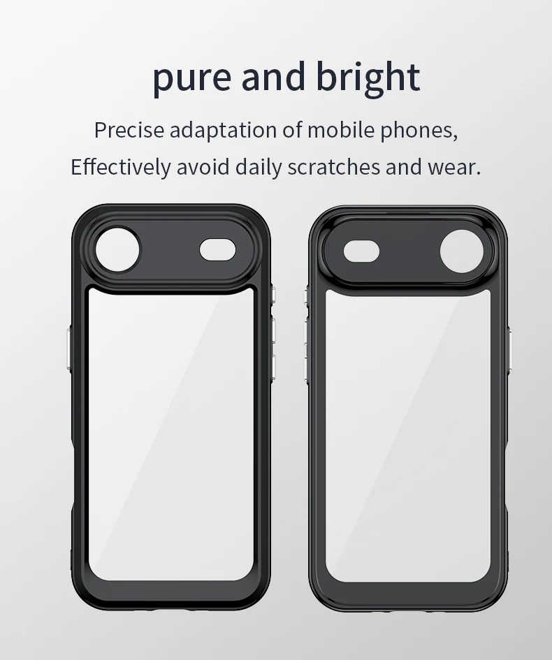 Upgrade your iPhone 17 Air with this premium, newly designed bumper case. Crafted from a combination of soft silicone, TPU, and clear PC materials, this case provides ultimate protection against scratches, drops, and fingerprints. The clear design highlights your phone’s natural look while keeping it safe in daily use.