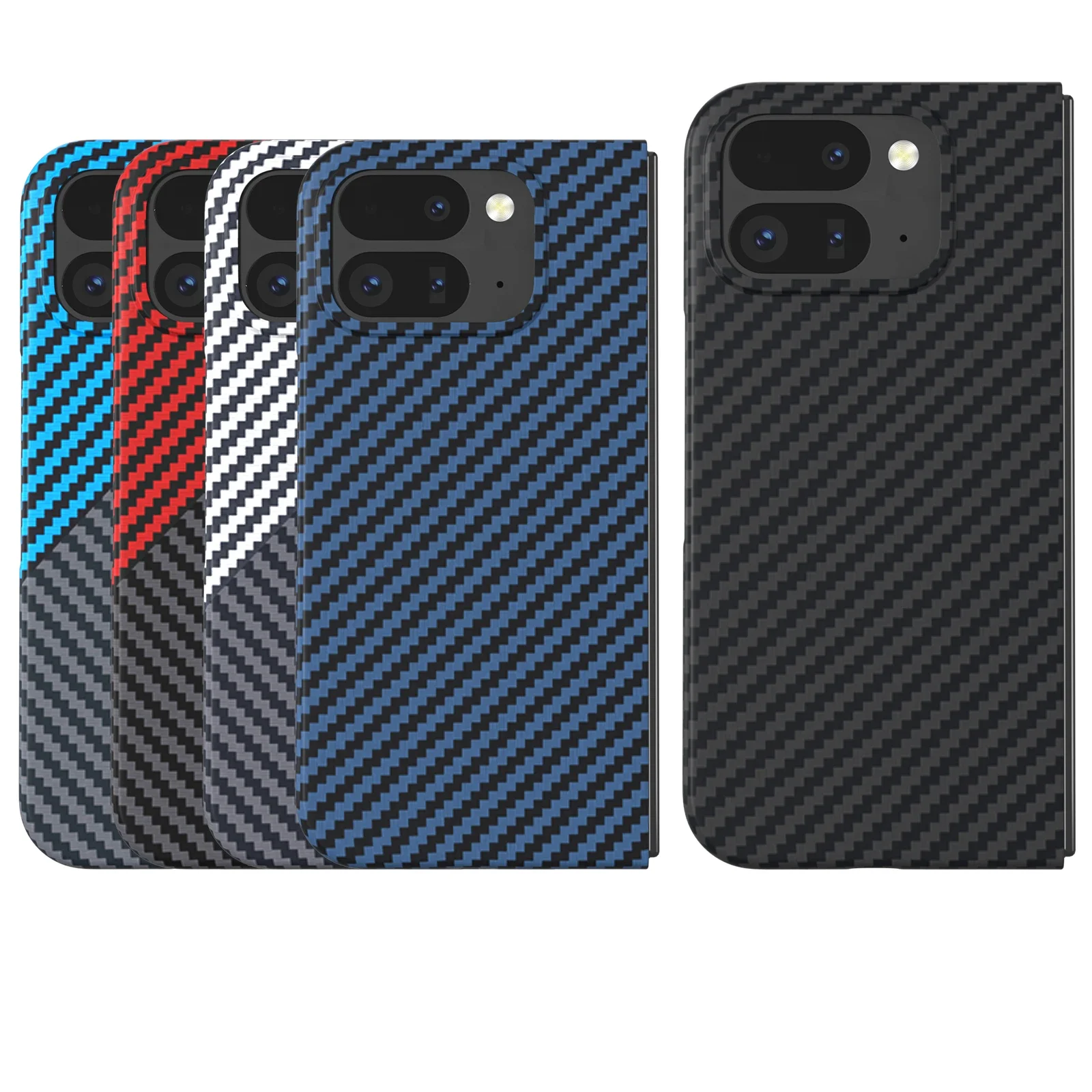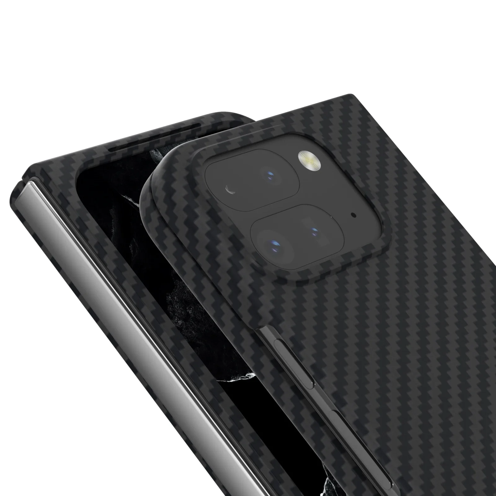 Enhance your Google Pixel 9 Pro Fold with this stylish carbon fiber pattern case. Designed for full coverage, it combines a sleek matte finish with reliable everyday protection. While not real Kevlar, the decal carbon fiber texture delivers a premium look and feel without extra bulk.