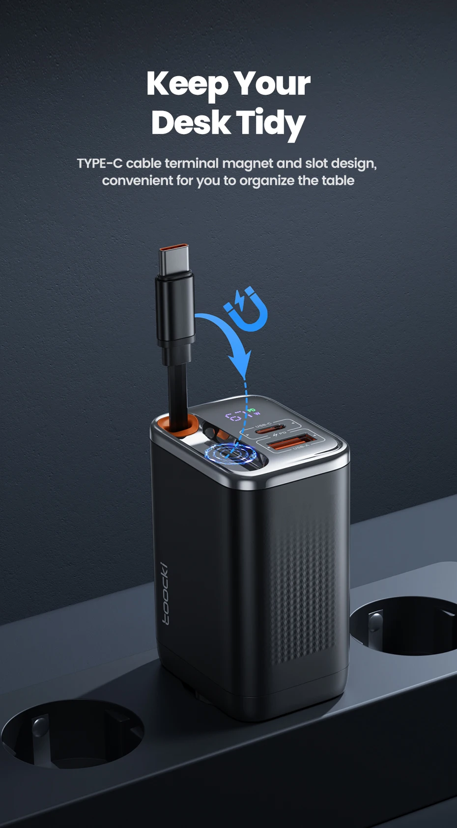 TYPE-C cable terminal magnet and slot design convenient for you to organize the table
