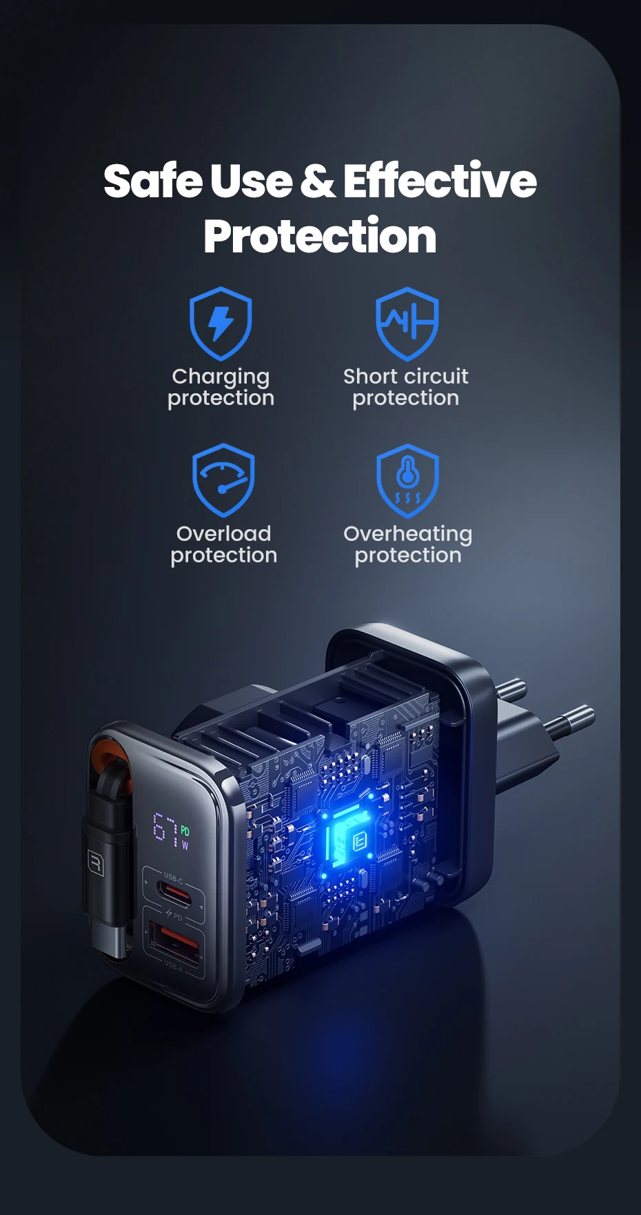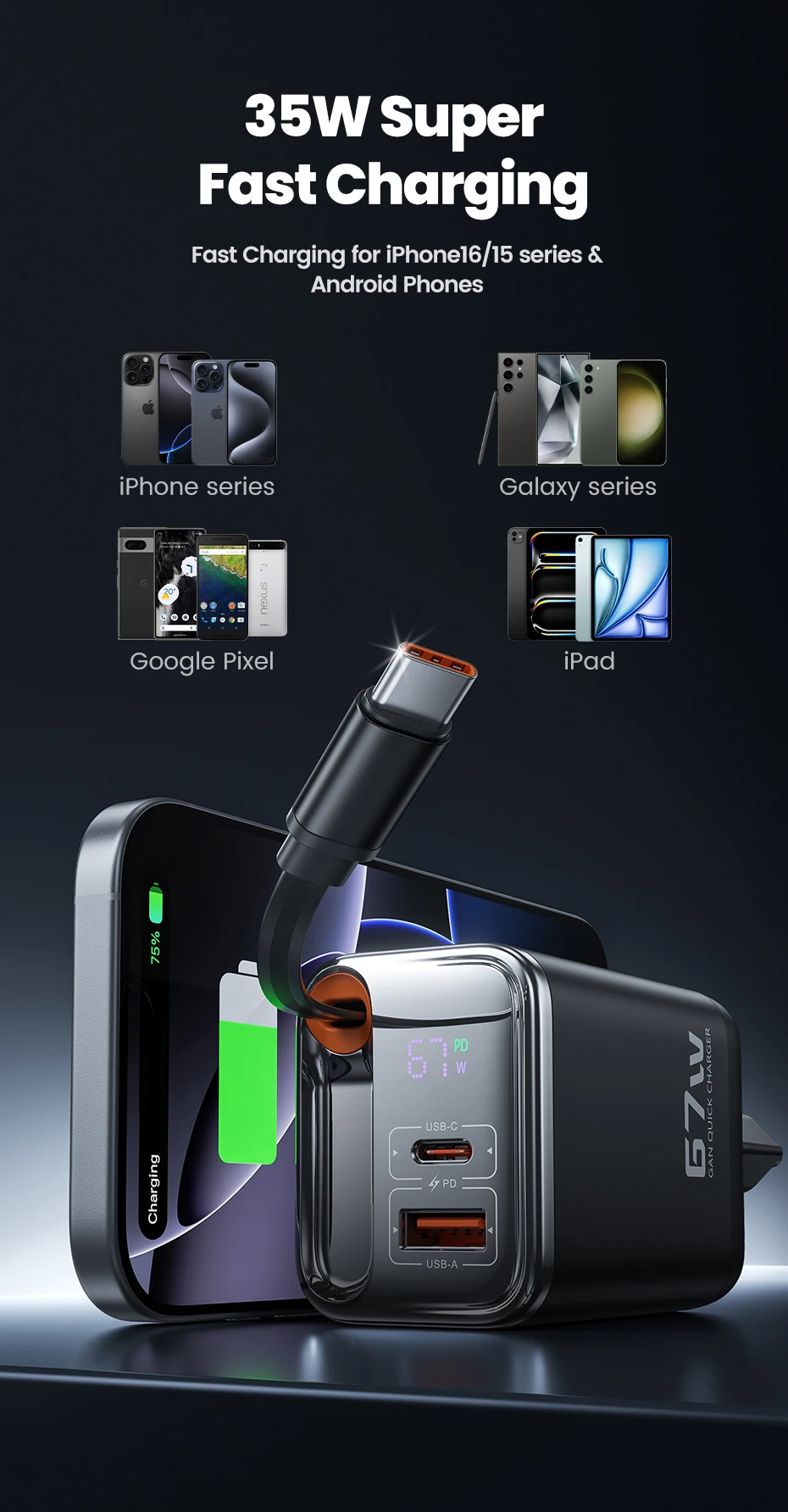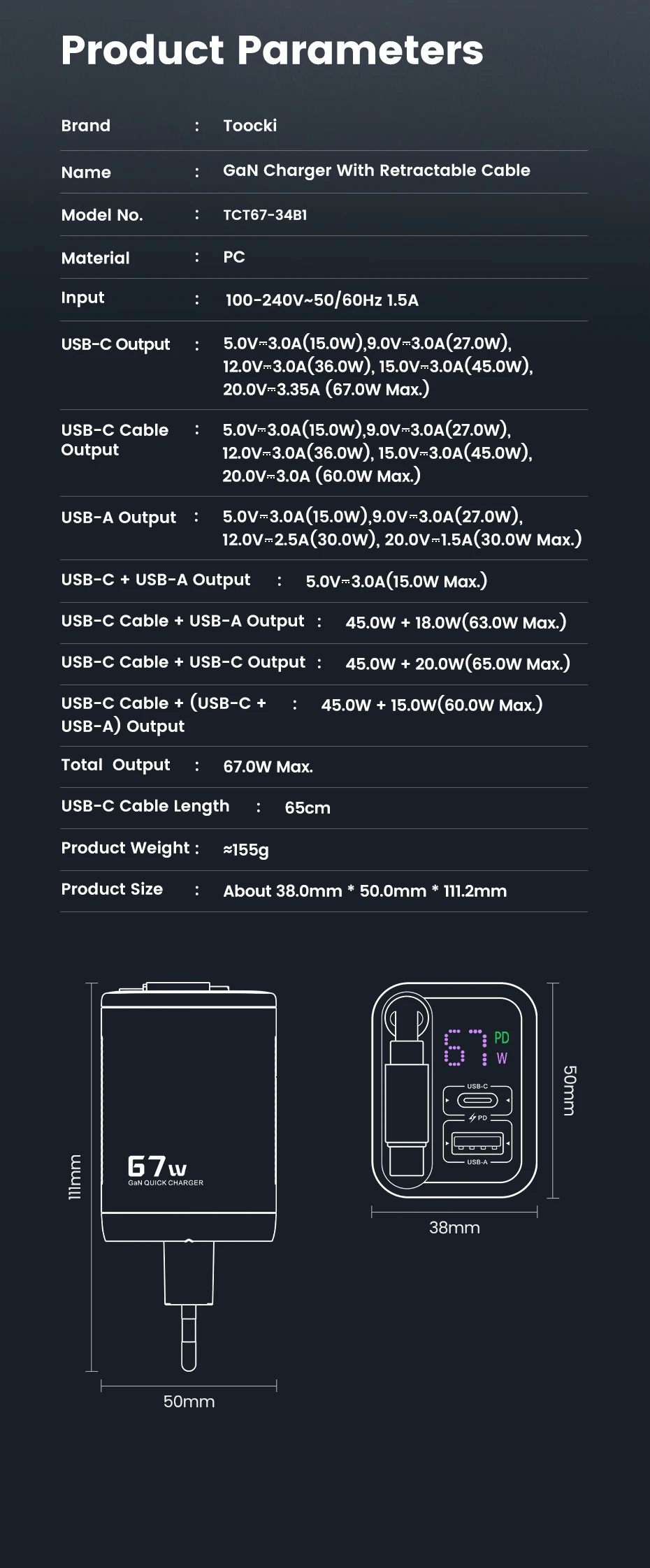 • 67W GaN Technology – High output with efficient temperature control.